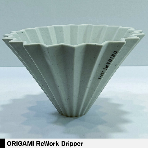 上記の陶器製ドリッパーと同形状で、製造時に粉砕したリサイクル磁器を20%用いたドリッパー。