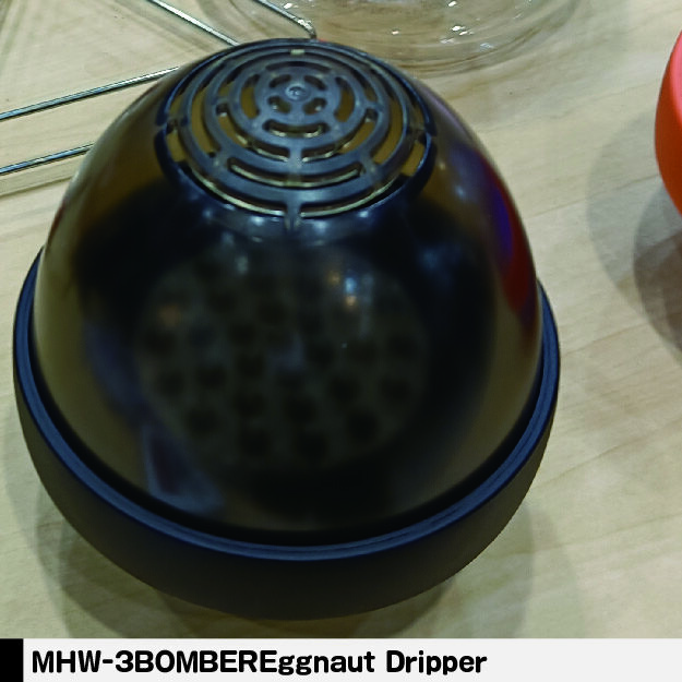 卵型のドリッパー。内部に粉をセットして、上からお湯を注ぐと均一に粉にお湯がかかり、ペーパーで濾過された後、下部にある穴から均一に抽出されるドリッパー。専用の入れ物もあって可愛い。
