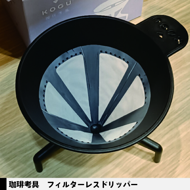ペーパーなしでそのまま抽出ができるメッシュフィルター式のドリッパー。こういうメッシュ式のドリッパーは目詰まりしないように入念に洗う必要がありますが、コーヒーオイルを抽出可能。オイル独特の滑らかな口当たりと香りの違いは是非お試しください。